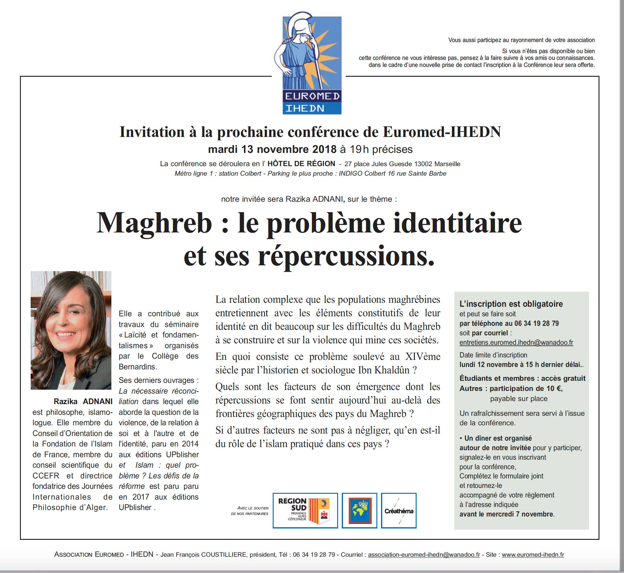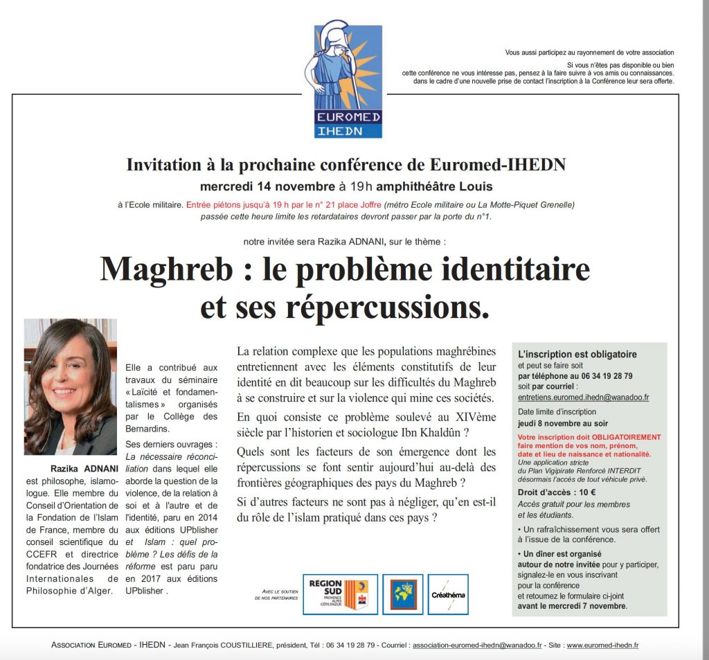 Conférence – Maghreb : le problème identitaire et ses répercussions – Dans le cadre des rencontres d’Euromed IHEDN