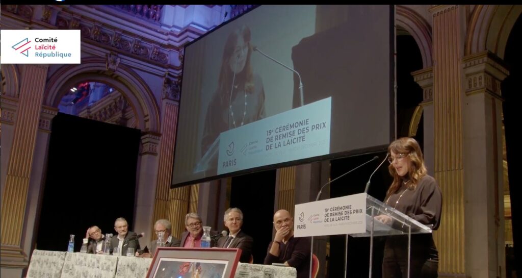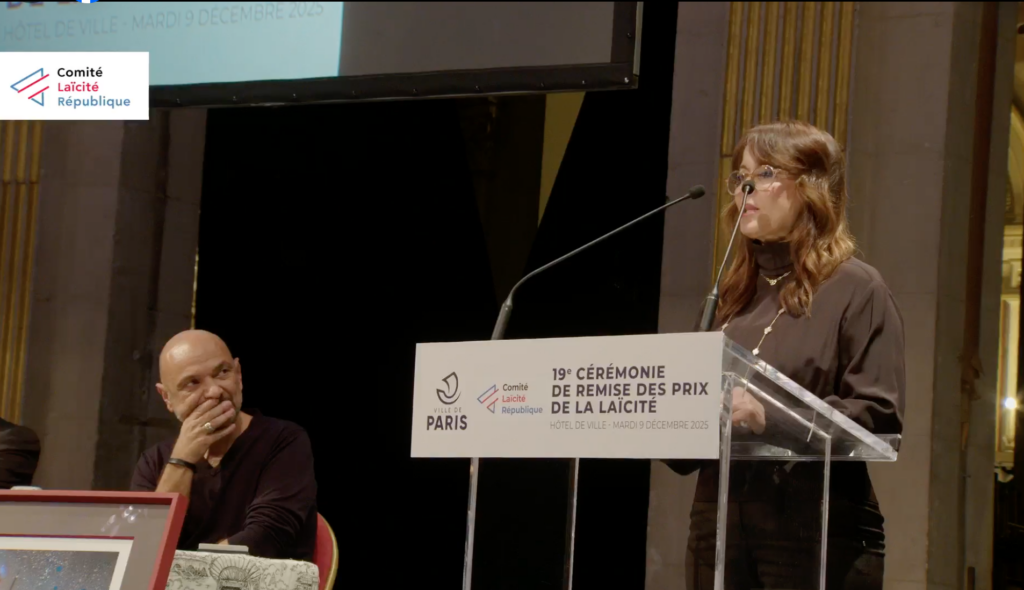 Messieurs les ministres, Madame la Maire, Monsieur le Président du CLR. Mesdames et Messieurs.  Je suis très honorée et très heureuse de recevoir ce prix de laïcité et science. Je remercie le Président du CLR Monsieur, le président du Jury et tous les membres du jury. Mon ouvrage « Sortir de l’islamisme », publié en 2024, s’inscrit dans la continuité de mon travail de recherche dans le domaine de l’islam et de la pensée musulmane que j’ai commencé lorsque l’Algérie a été frappée de plein fouet par l’islam politique, ou l’islamisme, le plus fondamentaliste, le plus patriarcal et le plus meurtrier et lorsque j’ai ressenti le besoin de me protéger contre son discours qui s’imposait à nous partout et y compris sur le lieu de travail et  notamment lorsqu’ il s’agissait de mes élèves. Il fallait que je sois capable, moi leur professeur, de leur répondre et qu’ils ne puissent pas me mettre en difficulté.