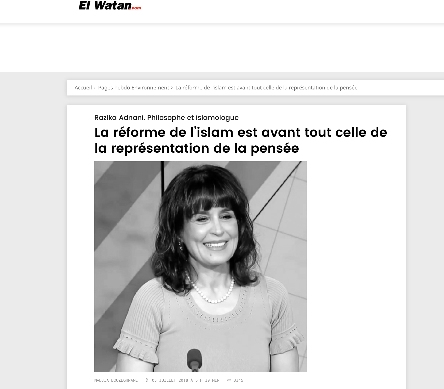 La réforme de l’islam est avant tout celle de la représentation de la pensée. Entretien accordé à El Watan