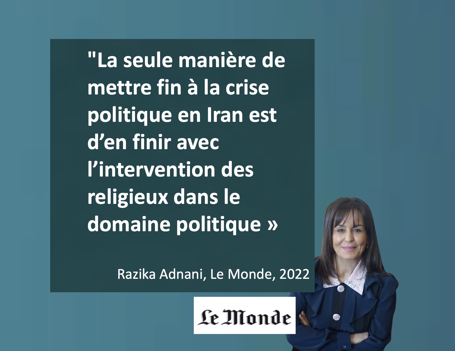 La seule manière de mettre fin efficacement à la crise politique qui traverse l’Iran est de cesser d’utiliser l’islam comme un instrument politique et d’en finir avec l’intervention des religieux dans le domaine politique. Les musulmans doivent évoluer vers cette façon moderne de concevoir la chose politique et la pratique de la religion doit retrouver sa nature première. Quelques soient les problèmes que la laïcité rencontre aujourd’hui, c’est en son sein qu’il faut réfléchir aux solutions et non en renonçant à cette façon moderne d’organiser l’État et la société, conçue pour protéger les libertés des individus dont la première est la liberté de croyance nécessaire pour préserver la dignité humaine.