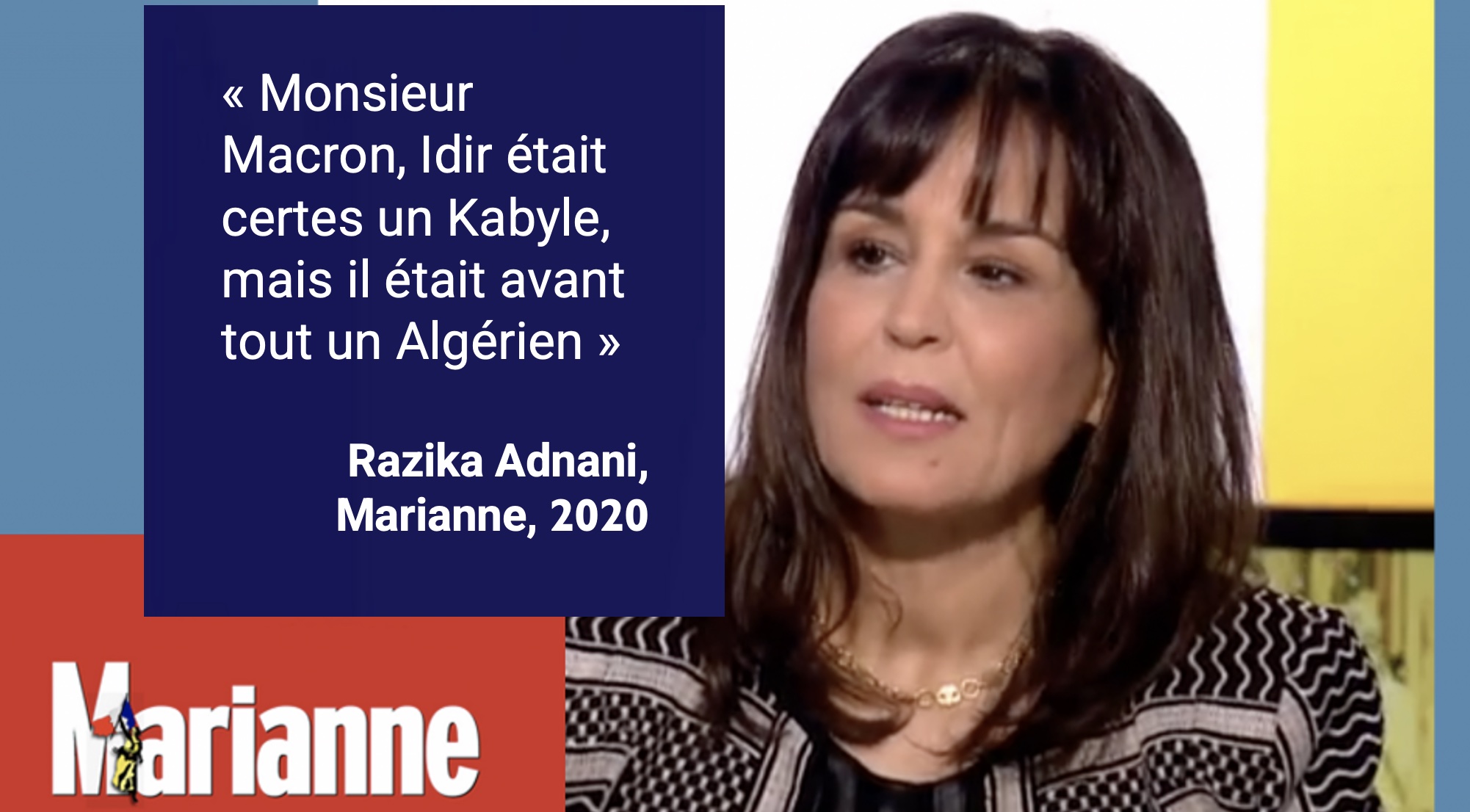 Décédé il y a peu, le chanteur algérien Idir a été salué par beaucoup, notamment Emmanuel Macron comme Kabyle. Pour Razika Adnani, il faut souligner que les Kabyles sont des Algériens avant tout. Marianne