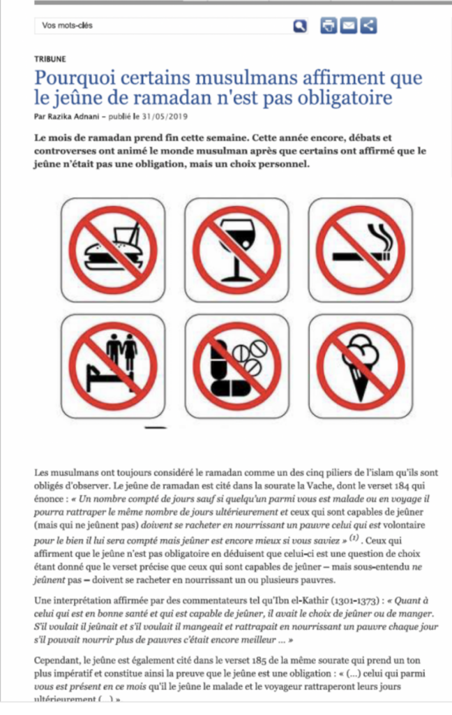 Razika Adnani « Pourquoi certains musulmans affirment que le jeûne de ramadan n’est pas obligatoire »
