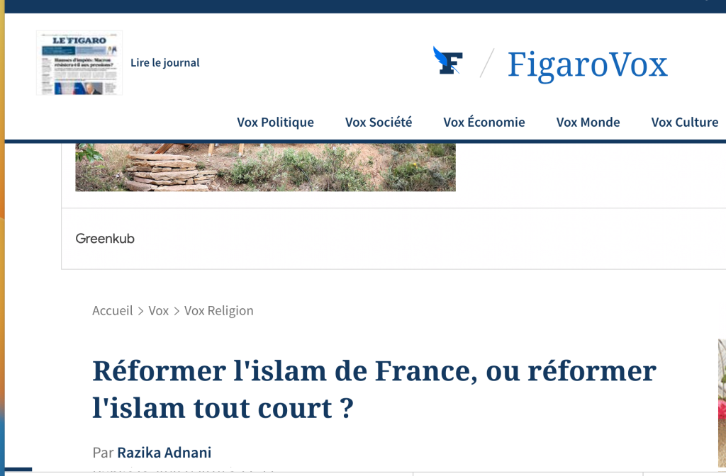 Razika Adnani « Réformer l’islam de France, ou réformer l’islam tout court ? » FigaroVox